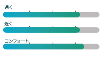 快適バランス重視設計 | 歪みの少ないソフト設計 | ワイドな近方重視設計 | パノラマ遠方重視設計 |