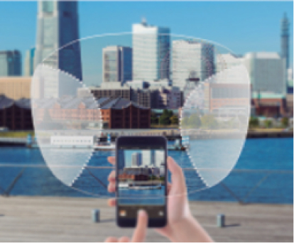 ゆれ·ユガミがなく、遠用、近用のスッキリした視界が得られる多重焦点レンズ。