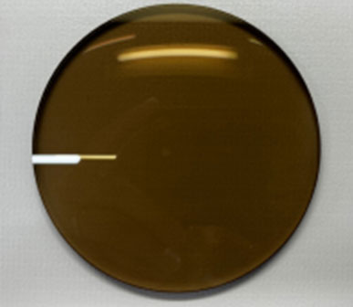 ブラウンとグレーの2カラーで屋外使用時には60~70%の濃さになる、調光剤練込タイプの調光レンズ。